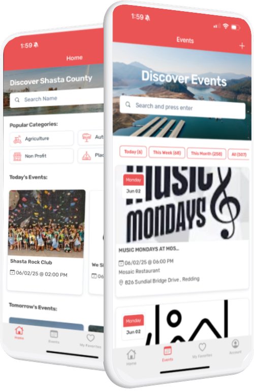 We created ShastaBiz to change that. It’s your one-stop app for discovering trusted local businesses and exciting community events in Shasta County — all in one convenient place. No more digging. No more missing out.